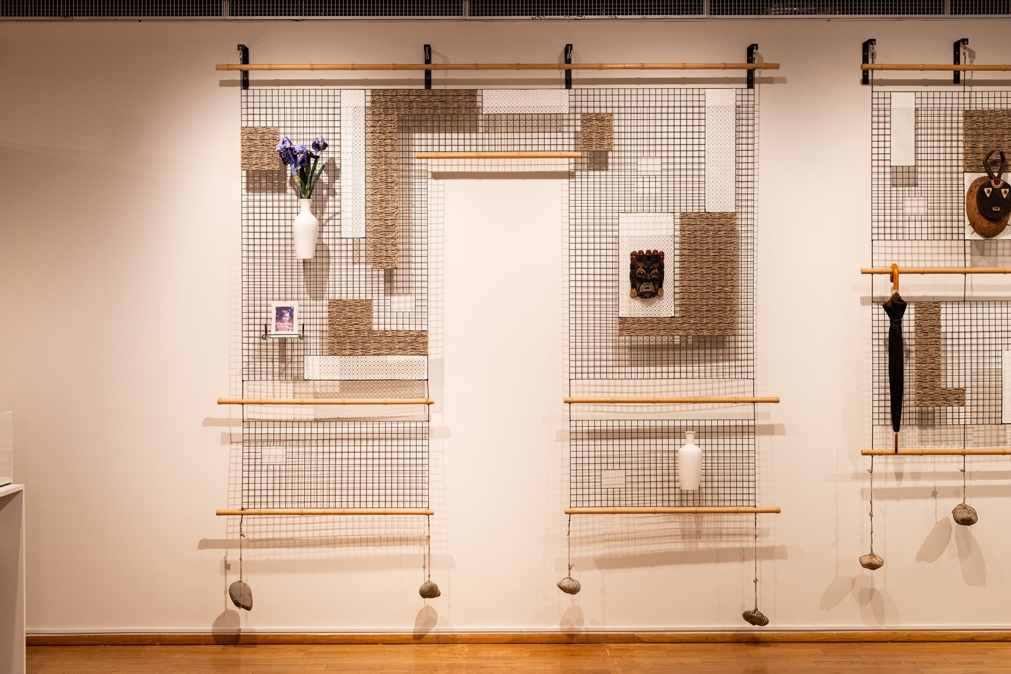Dans ses Arazzi metallici, ces derniers sont tous exposés de la même façon, qu’ils soient fonctionnels ou plus symboliques. La juxtaposition des objets compose une galerie d’histoires personnelles, liées au passé mais aussi construisant le présent, dans une interaction perpétuelle.