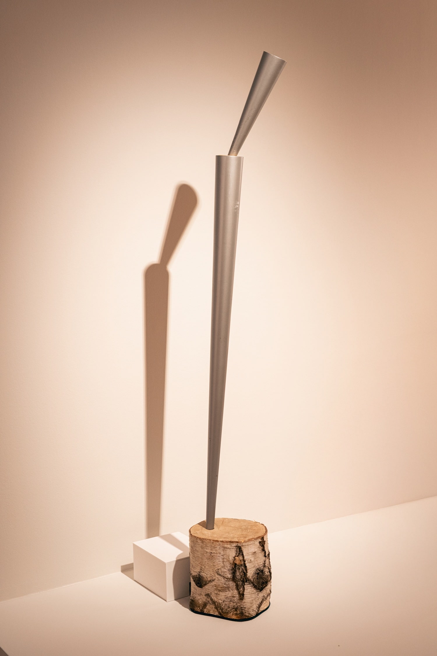 Lampadaire en bouleau et aluminium, 188 x 28 cm