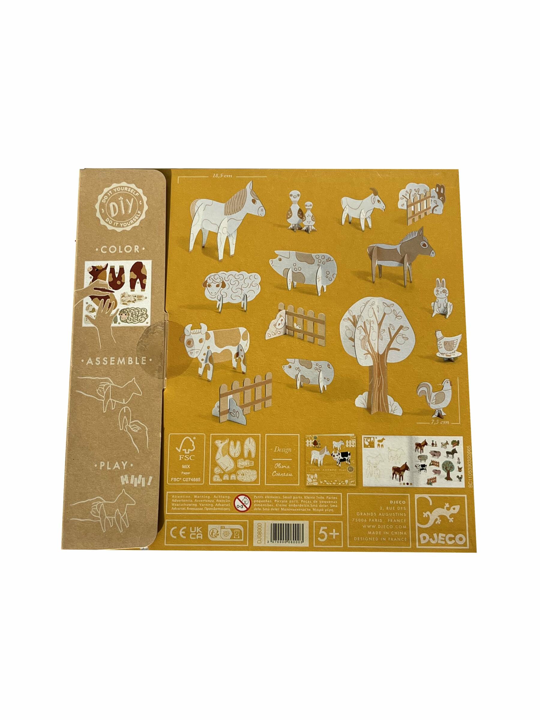 Colorie assemble et joue DIY Ferme de Djeco, une activité créative pour les enfants à partir de 5 ans.