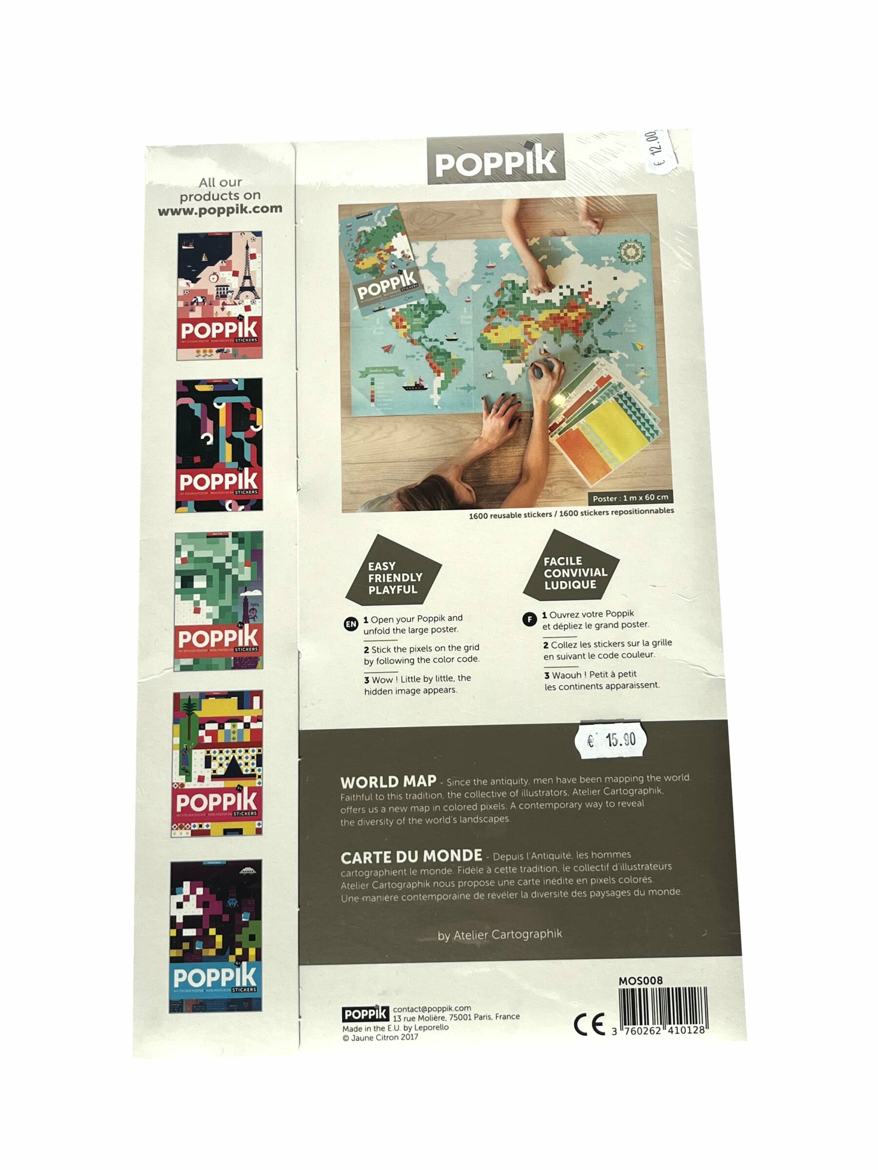 Faîtes apparaître les continents en plaçant les stickers repositionnables en fonction des numéros. Vous réaliserez une belle carte du Monde très colorée.
